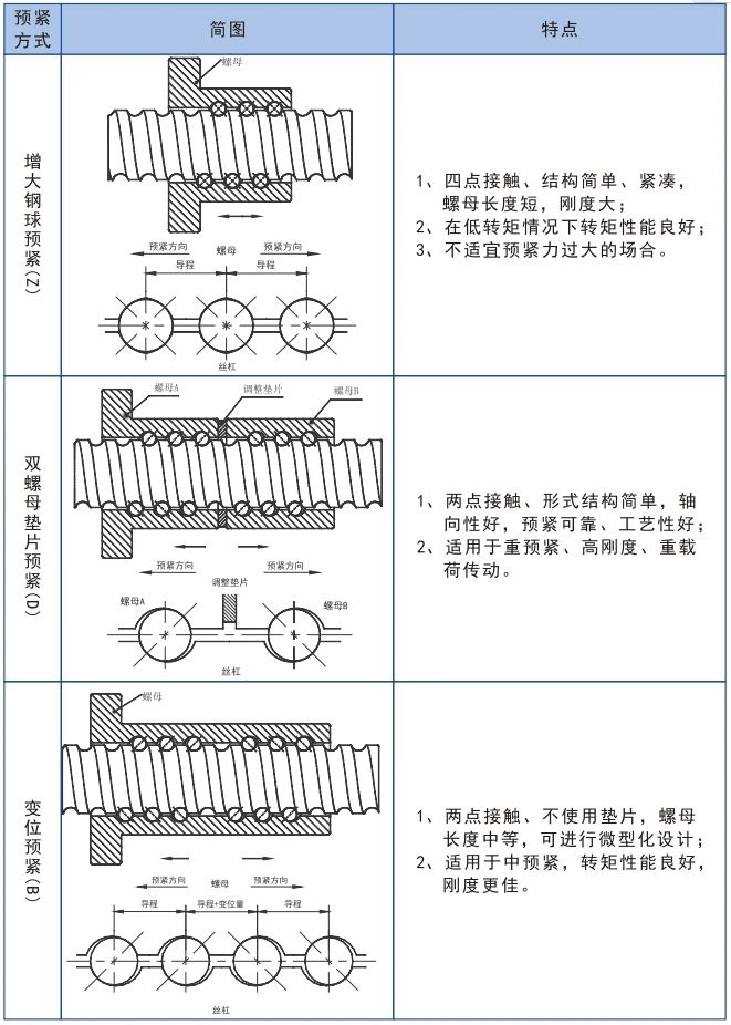 凱特精機滾珠絲杠副按預緊方式分為增大鋼球預緊(Z)、雙螺母墊片預緊(D)和變位預緊(B)